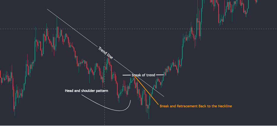 In this pattern, the breaking of the neckline confirms the trend reversal, allowing traders to confidently enter a short trade to profit from the market decline.
